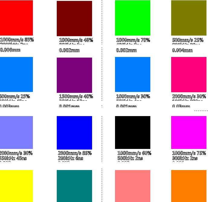Tabla ezcad 2 Fibra Fibra Normal Graba en todo tipo de metal, recomendado para máquinas sin Q pulsow width (ns). Ejecutalo y obten resultados Freq vs Potencia 0.05-2000 Descargar Freq vs Potencia 0.1mm-1000 Descargar Descargar Deseas Más tablas, aqui... Freq vs Potencia Descargar Freq vs Potencia 0.01-750 Descargar Freq vs Potencia 0.05-750 Descargar Fibra Mopa Mopa permite marcar a color principalmente en aceo, pruebalo, solo descargalo y y ejecutalo JPT MOPA - 100w Descargar JPT MOPA - 60W Descargar JPT MOPA - 30W Descargar